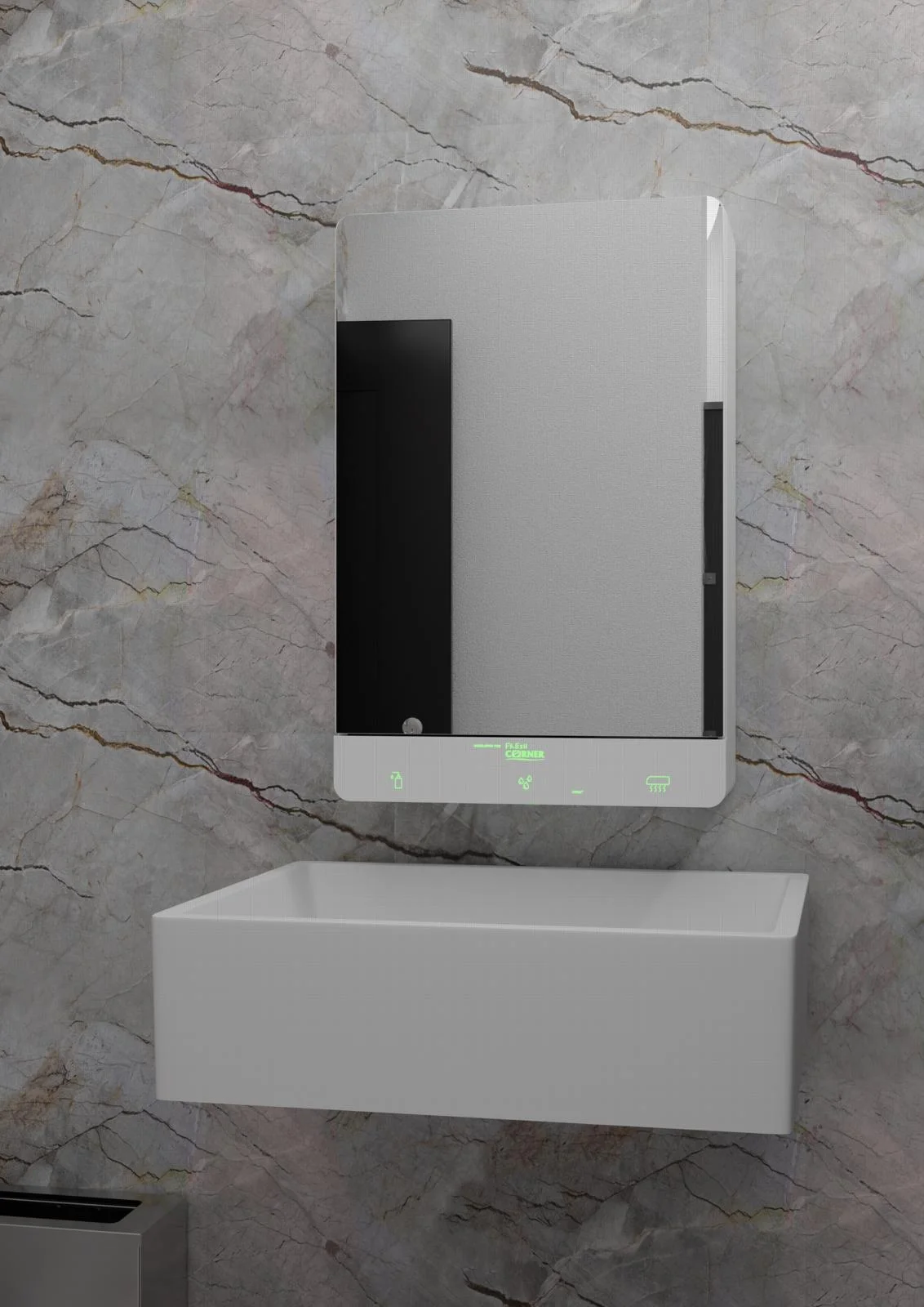 Teplota vody sa nastavuje pomocou termostatického zmiešavača umiestneného vo vnútri nerezovej konštrukcie, čím je zabezpečený vysoký komfort a bezpečnosť používateľa. Zariadenie je vybavené samostatnou optikou s dlhým dosahom, ktorá slúži na automatické zapínanie a vypínanie ambientného podsvietenia pri príchode a odchode používateľa do alebo zo zóny snímania.