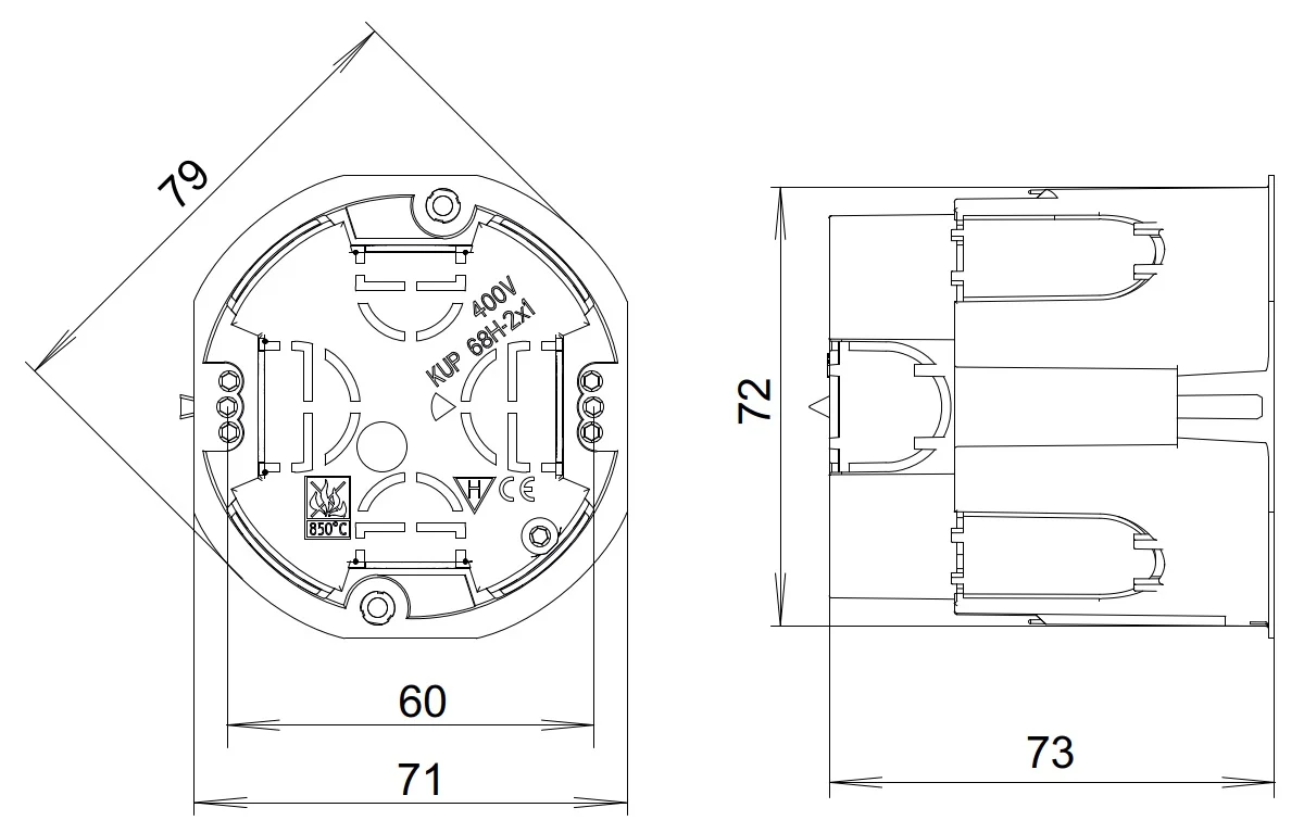 - RozmeryØ 72 x 73 mm